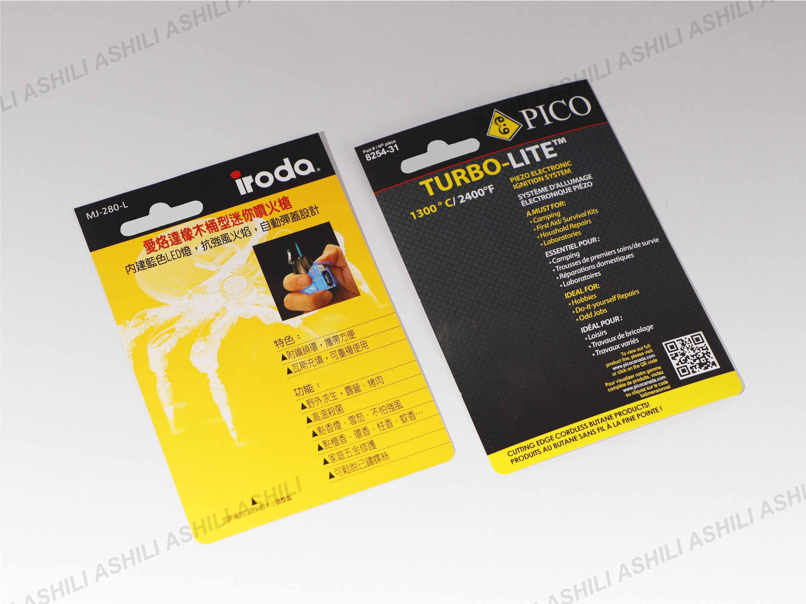 Hang tags are not only widely used on blister packs but can also serve as price tags and brand labels in packaging. The holes can be designed as butterfly holes or round holes. For blister packaging, it is necessary to commission a plastic manufacturer to produce the blister.